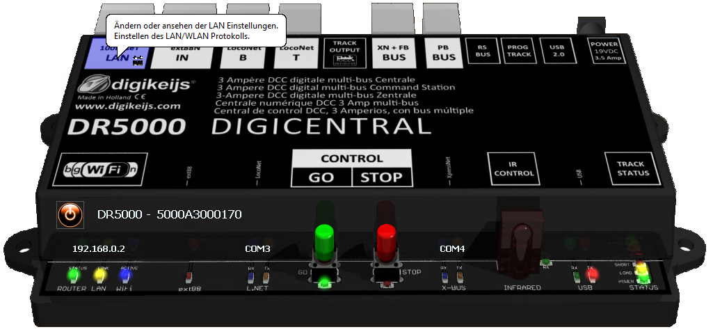 - Unter „IP-Adresse der Z21 Zentrale“ die IP-Adresse der DR5000 eintragen