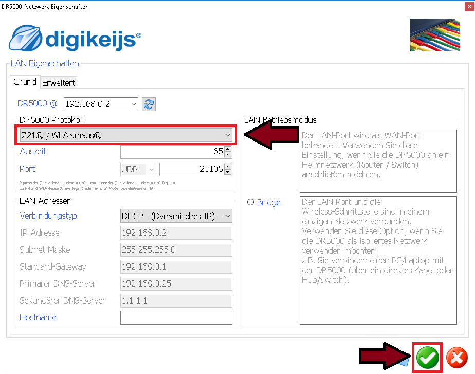 - Unter „DR5000 Protokoll“ ⇒ „Z21® / WLANmaus®“ auswählen